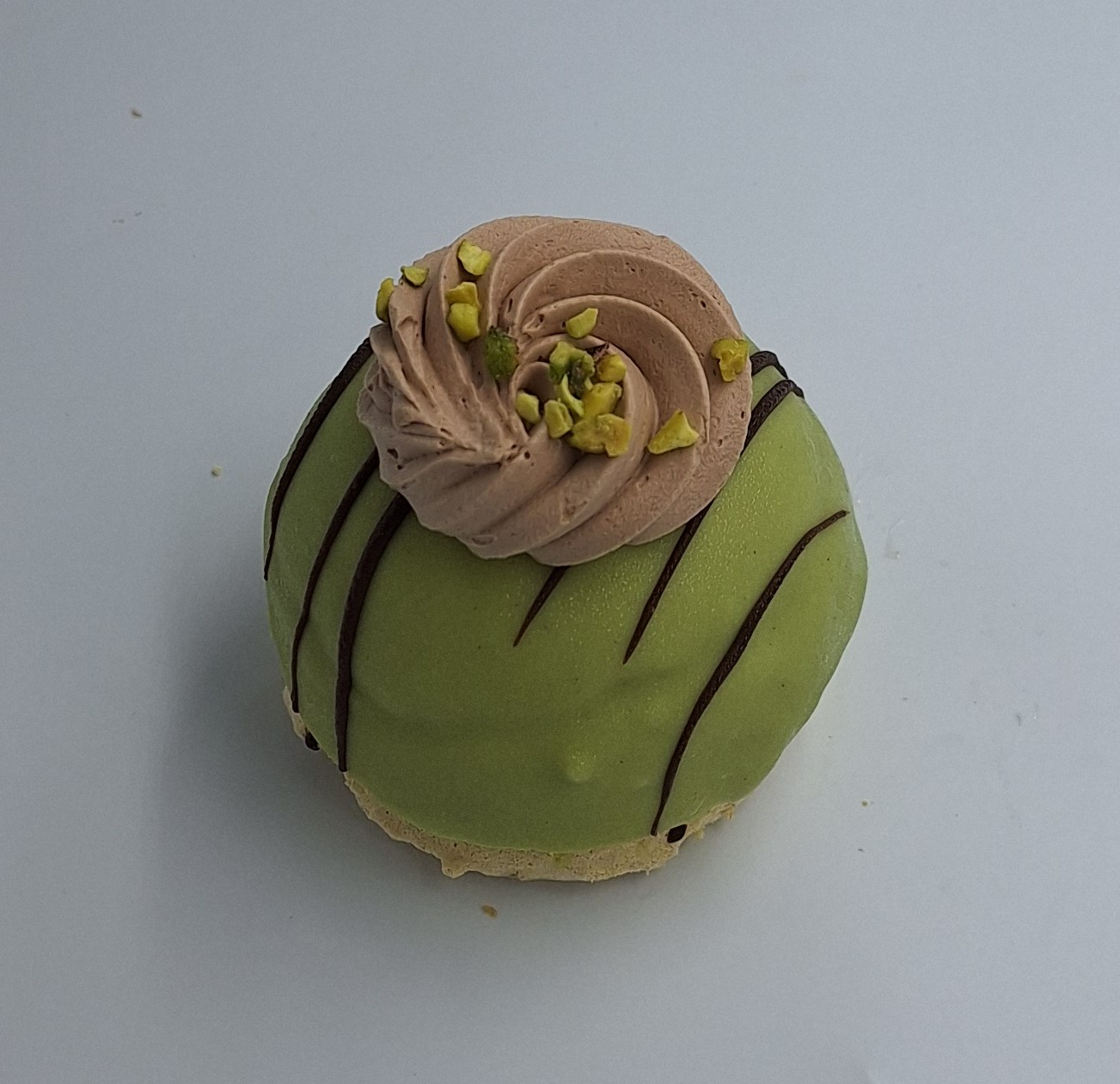 Hazelnootschuim gevuld met Pistachecréme en Chocoladecréme. Wij maken gebruik van échte zuivere grondstoffen en in de Pistachecréme bevind zich een ietwat krokante bite!