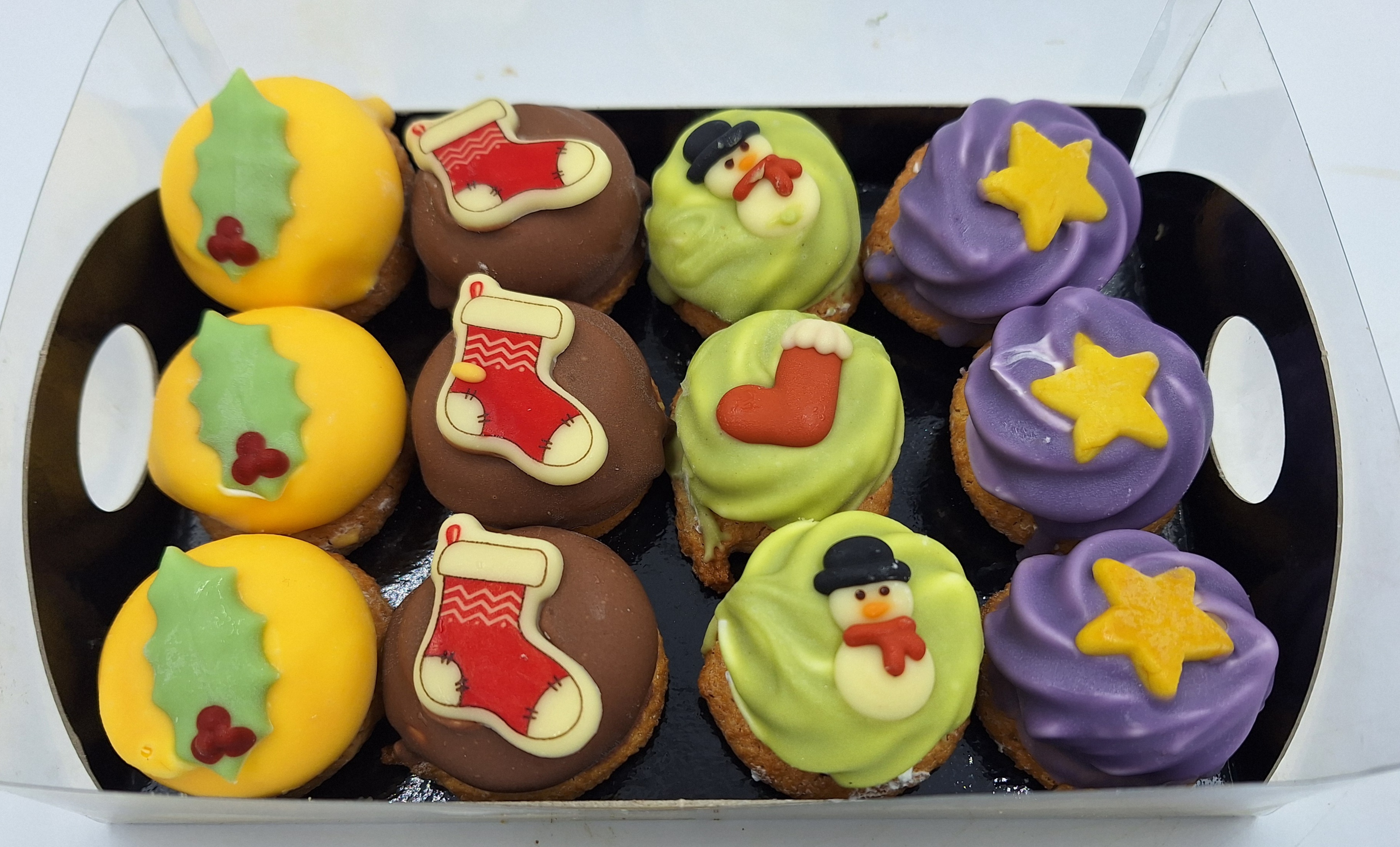 Bitterkoekje opgespoten met Advocaat créme, Chocolade créme, Bosbessen créme of Pistache créme. Verpakt in een feestelijk doosje per 12 stuks.